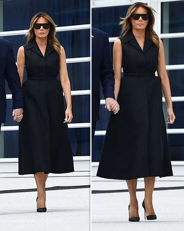 وارتدت ميلانيا فستان أسود وأكملت مظهرها الأنيق المعتاد بزوج من الأحذية ذات الكعب العالي باهظة الثمن بمبلغ ٥٦٠ جنيه إسترليني.