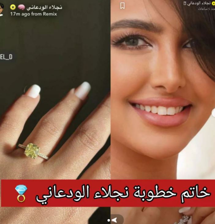وعلى صعيد مختلف كشفت احدى الصفحات المعنية بأخبار المشاهير عن تفاصيل خاتم زواج نجلاء الودعاني الذي خطف انظار الجمهور وأشارت الصفحة ان الخاتم المميز من تيفاني وهو حبة واحدة لا مثيل لها، كما ان سعره يصل إلى 170 الف ريال سعودي