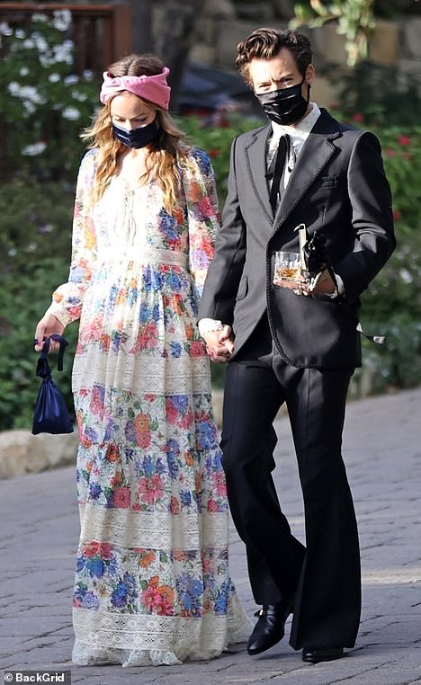 وخلال آخر ظهورهما الرومانسي، ارتدى هاري بدلة سوداء وقميص أبيض وكان يمسك بيد أوليفيا التي كانت ترتدي فستانًا مشجرًا وكان كلاهما يرتدي قناع وجه أسود أثناء مغادرتهم الفندق للانضمام إلى حفل زفاف في كاليفورنيا.