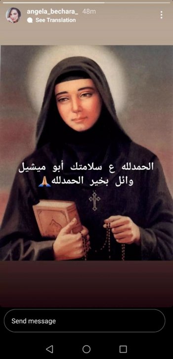 من جانبها تناست السيدة أنجيلا بشارة جميع المشاكل التي بينها وبين طليقها الفنان اللبناني وتمنت له السلامة عبر ستوري حسابها في انستغرام حيث نشرت تعليق جاء فيه: "لحمدلله ع سلامتك أبو ميشيل، وائل بخير الحمدلله"
